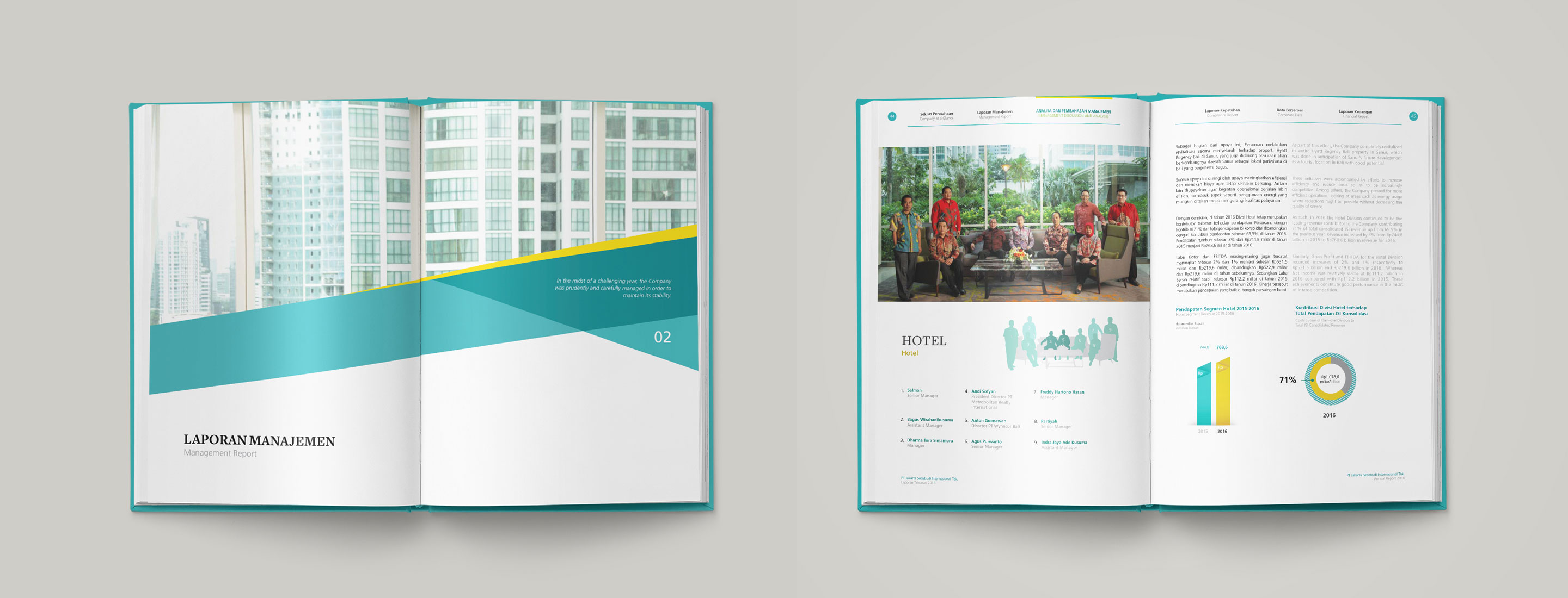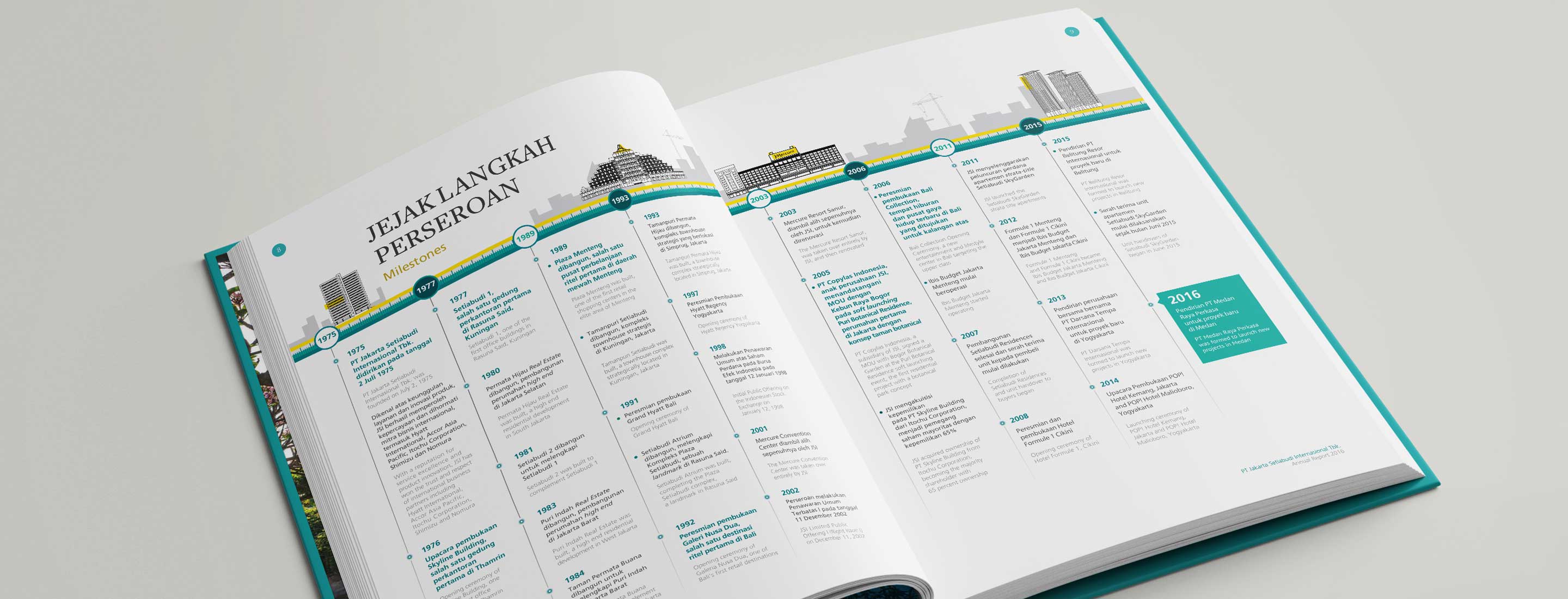 Our main challenge was to create an interesting Annual Report Design that differs from the previous designs. We successfully did so by highlighting the key facts through infographics and use of brighter and more lively colors, while the cover design overall symbolizes both the past and future of JSI as a company.