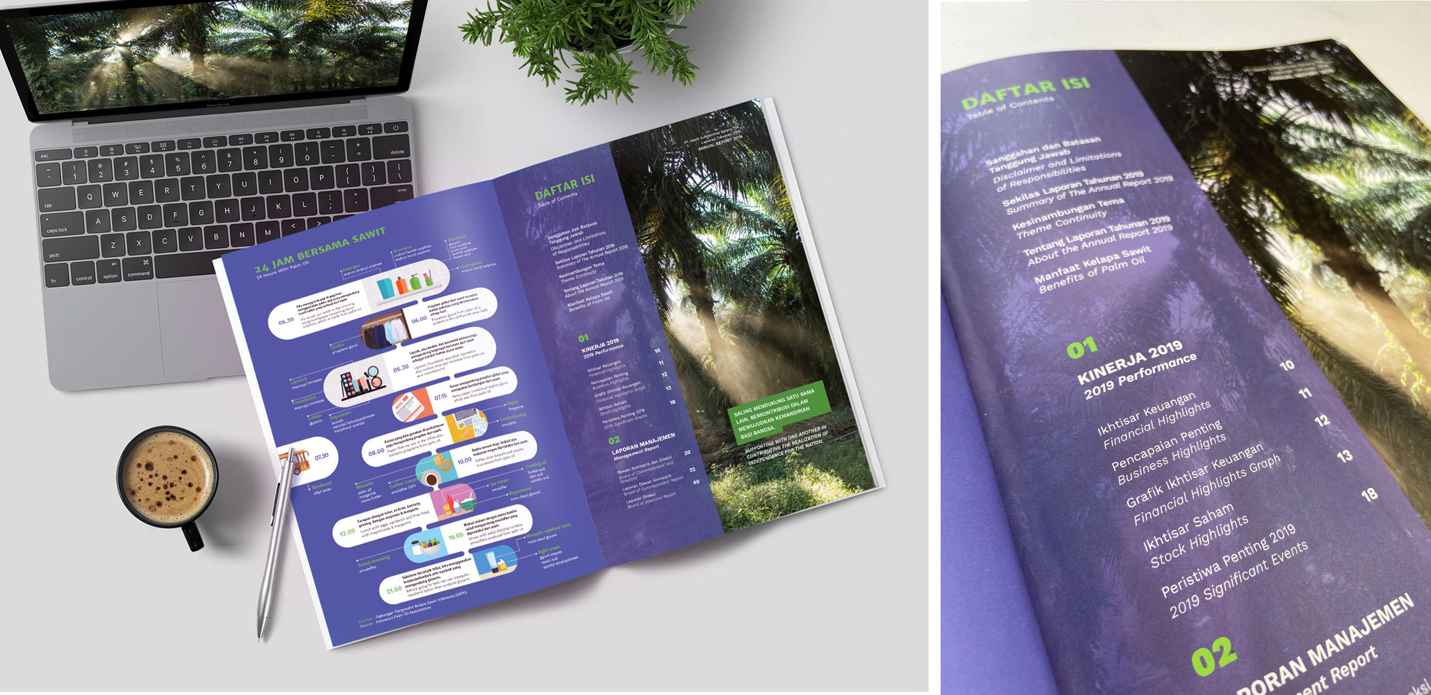 We had to create 238 pages Annual Report, highlighting the important key facts through infographics and copywriting. Design wise, watercolor brush stroke technique was selected as the visual style, combined with photography, each page illustrates the story of commitment that the Company has always been determined to serve our nation with all its strengths and capabilities.