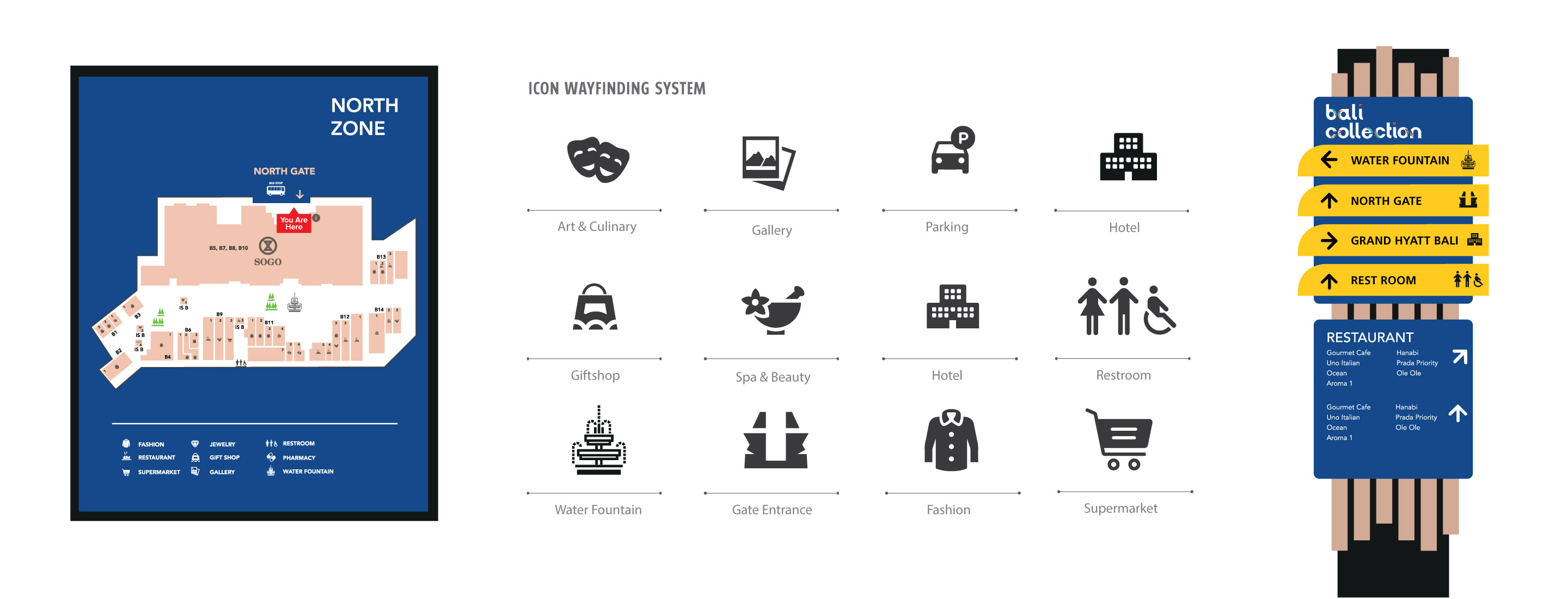 For the outdoor signage, components of wood were placed to deliver a vintage look and symbolizes the traditional and natural environment of Bali. It’s important for the wayfinding elements to be harmonious with the surrounding and at the same time eminently noticeable.